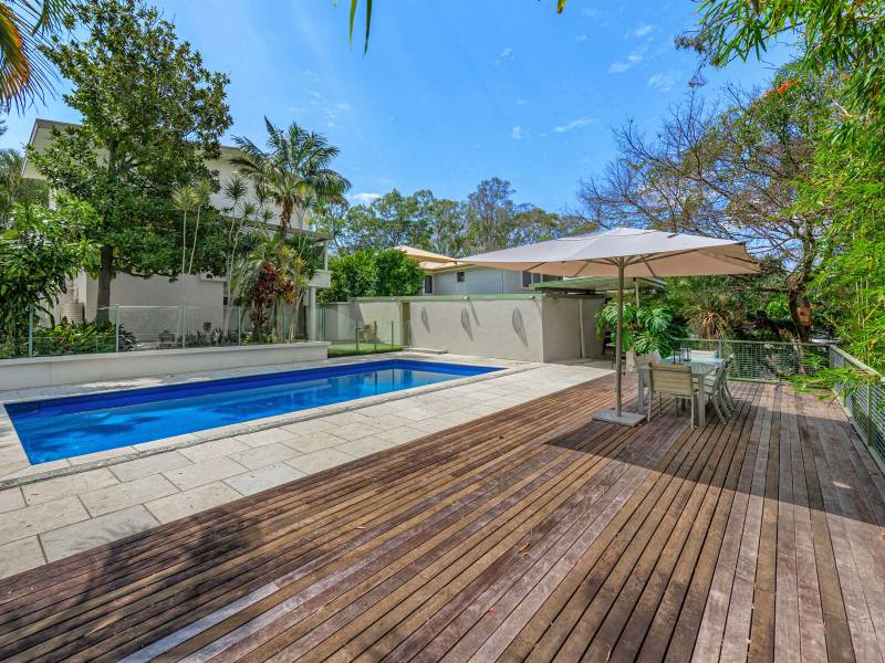 The formal dining room to the enormous gourmet kitchen filled with Miele appliances and Italian granite benchtops. Both these rooms open onto the rear balcony, ideal for alfresco dining overlooking the rear garden, pool and rainforest park beyond.